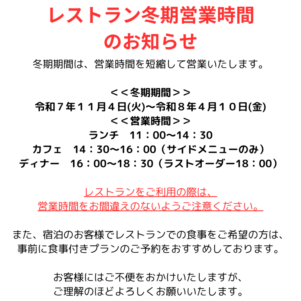 【レストラン冬期営業時間のお知らせ】