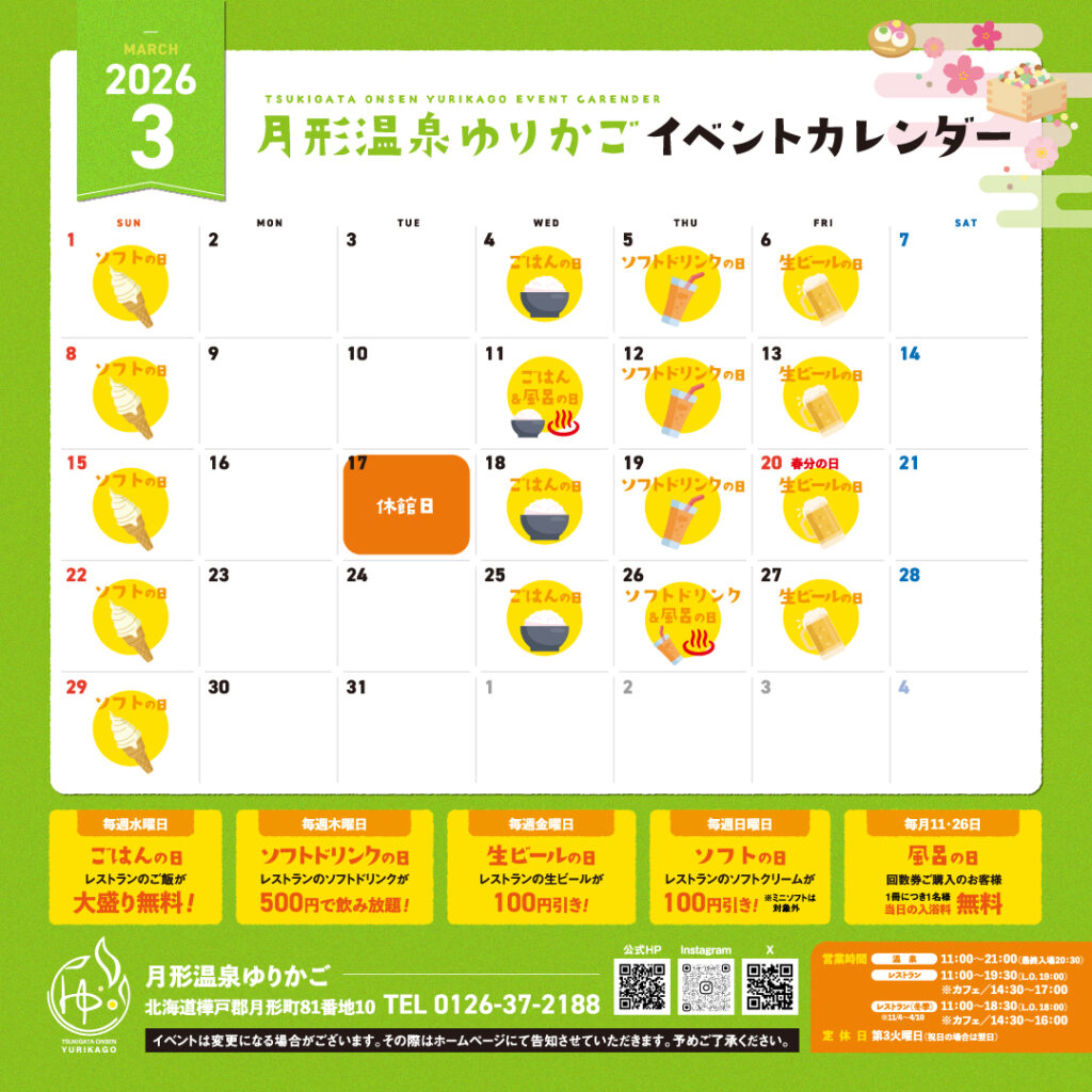 3月イベントカレンダーのご案内